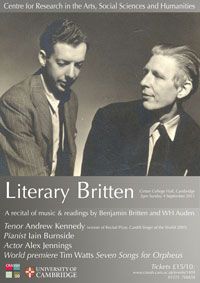 Dramatises the complex friendship between WH Auden and Benjamin Britten, through songs, letters, diary entries and poetry, performed by Alex Jennings, Iain Burnside, and Robin Tritschler.